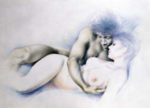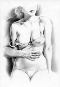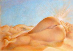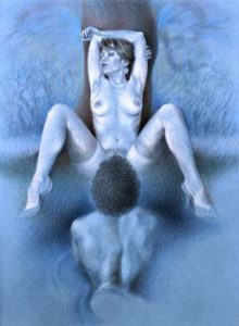 I first came upon Paula when she illustrated Janus. As admirers of Paula’s work will know she not only illustrated Janus’ she edited Februs and also contributed to the short lived Fessee magazine. However, there is much more to this talented lady that spanking illustrations. Hanging on the wall of my office is a framed picture of a ‘Bodyscape’ which is far away from the world of spanking. I also have four of her prints in my bedroom and these show how versatile Paula is.